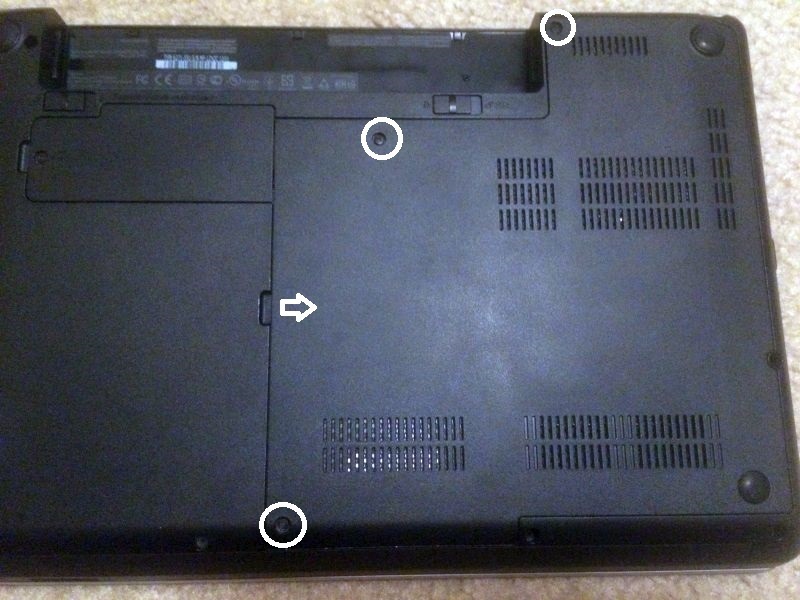 まず電源とバッテリーを外します。ラップトップを裏返しのまま、わずか3つのネジを取り外すことでCPUやそのファンは簡単にアクセスできます。この辺りの設計はThinkpadよく出来ていて感心します。