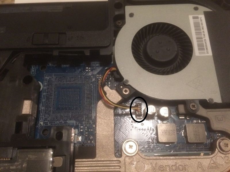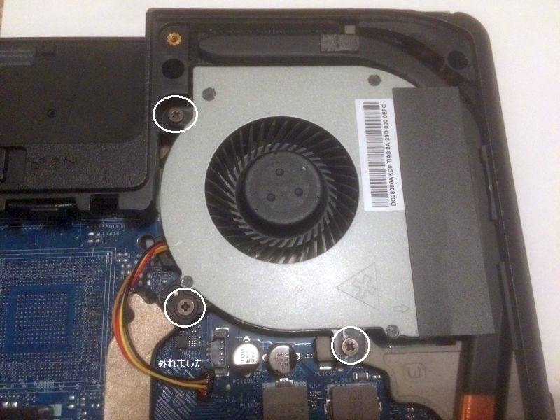 次にまた3つのネジを緩めることでCPUファンだけを外すことが出来ました。ラップトップによってはヒートシンクと一緒に外さないといけないメーカーもあるようです。