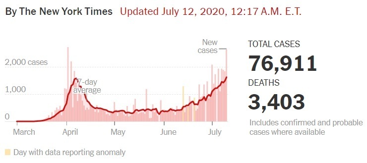 州も開くことにゴーサインを出しているのですから、誰も悪くありません。ただ事実として今週は全米一、新規感染者数が多かった街となりました。