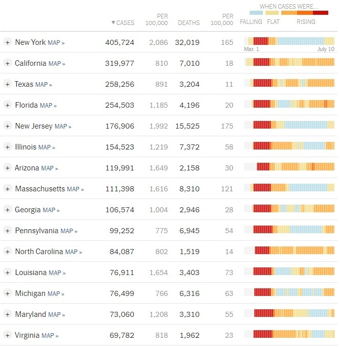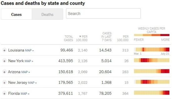 毎日の新規感染者数が4月のピークよりも高く、人口比で全米ワースト1になっても、死者もまた増え始めたてもとりあえず部分的に学校を数週間開くようです。ここまで突き進む科学的な根拠をもう少し教えて欲しいです。