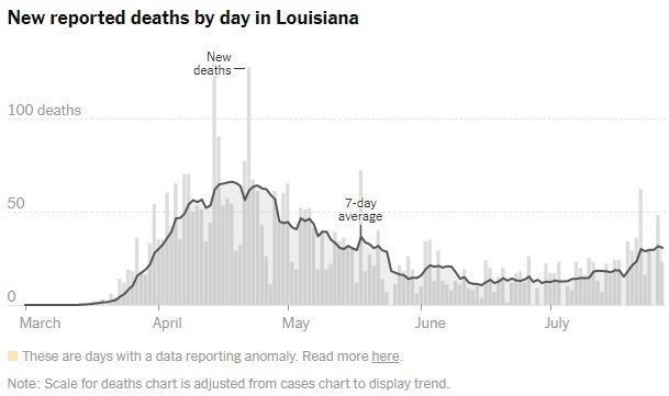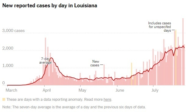 コロナと言えばルイジアナだとLouisiana Department of Healthというところが統計をまとめているのですが、先週あたりから土曜日は統計を出さない、という通達をだしデータが何も発表されなくなりました。ここまで休まずにやってきた、ということなんでしょうが、医療従事者も同じなんですよね。頭が下がります。