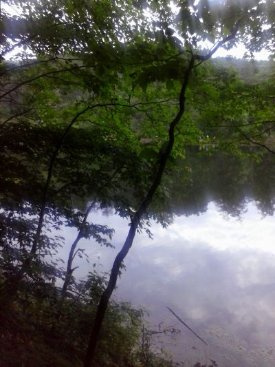 予定とは違う道でどこ歩いているかわからないけど、とりあえず歩を進めることにした。あとで調べると湖のまわりの道(Tom Wallace Lake Loop)はわずか0.6マイル、チューリップの道(Tulip Tree Trail)は片道0.3マイルであった。