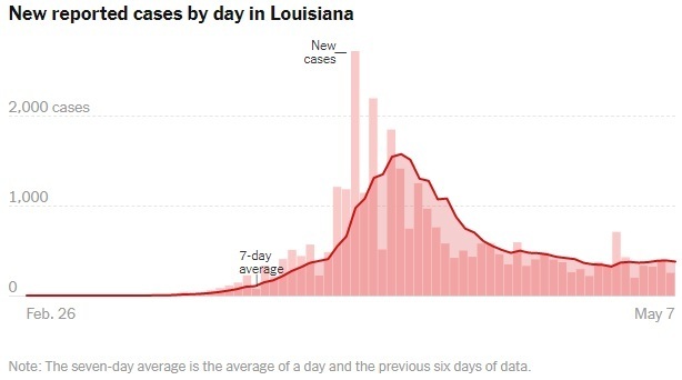 5月に入りました。ネズミの面倒を見にニューイベリアに行きましたが、車通りが多かった気がします。ここラフィエット郡はいまだに一桁感染者が続いていますが、数は微妙に増えてきています。0だった1日は幻のようです。
