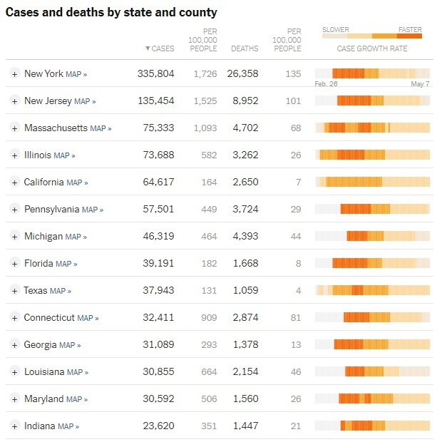 いずれにせよいくつかの州が焦って早く経済を再開したため、8月ごろまでの推定被害者が6万人強だったがモデル変更により13.5万人に変更された、と報じています。これはこの間の日曜日にトランプ大統領が訂正した(最初:6万5千人程度、訂正後8万ー9万人)した推定犠牲者数よりも高い数値なので、一体彼の口から出た数字は何を根拠にしたものだったんでしょう?というのが記事の主論です。